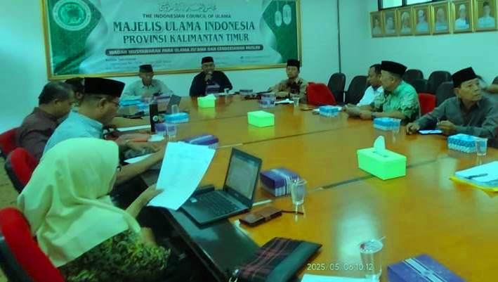 SAMARINDA Amanah ummat.Com- Majelis Ulama Indonesia (MUI) Kalimantan Timur menggelar Rapat Koordinasi Pelaksanaan program dan Kegiatan Komisi dan Lembaga yang bernaung dibawah MUI prov kaltim tahun 2025. Rapat yang dipimpin Sekretaris Umum MUI Kaltim H Samudi didampingi Wakil ketua Umum MUI KH Muhammad Haiban dan dihadiri 9 Ketua , sekretaris komisi , dan 3 lembaga Yaitu Basyarnas, Pinbas dan Direktur LPPOM. Rapat Digelar di ruang rapat MUI Jalan Harmonika no 1.b Samarinda, Selasa 6 Mei 2025