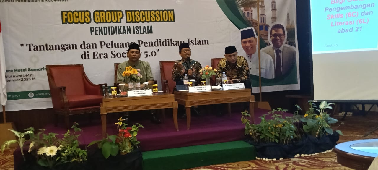 SAMARINDA (Amanah Ummat.Com) MUI kaltim melalui Komisi Pendidikan dan kaderisasi menggelar kegiatan, FGD (Focus Group Discussion) Pendidikan Islam, Tantangan dan Peluang Pendidikan Islam di Era Society 5.0 . di Five Premiere Hotel Samarinda Kamis, (18/9/2025).