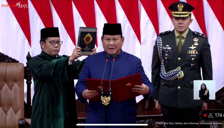 Demikian penegasan Prabowo usai dilantik menjadi Presiden RI periode 2024-2029 dalam sidang paripurna MPR RI di Gedung Nusantara, Komplek Parlemen, Senayan, Minggu, 20 Oktober 2024.