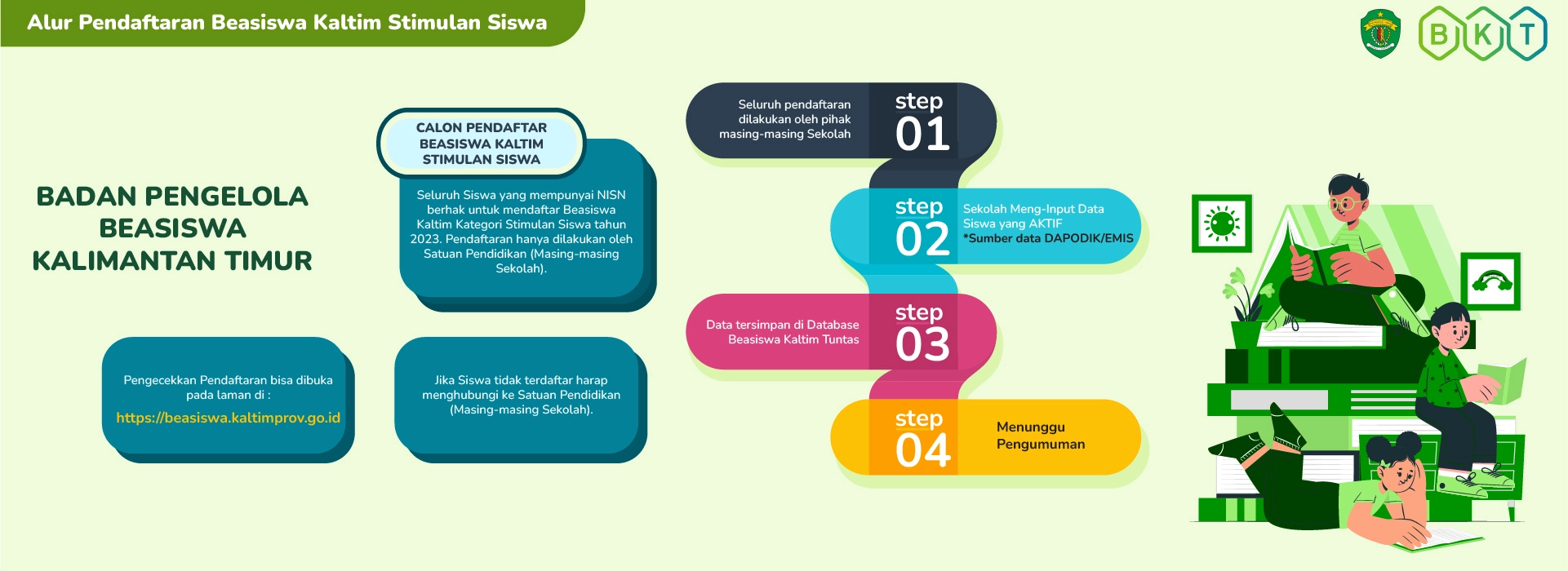 Dijelaskan, untuk pendaftaran dapat langsung masuk di laman BKT dengan alamat www. Beasiswa.Kaltimprov.go.id.