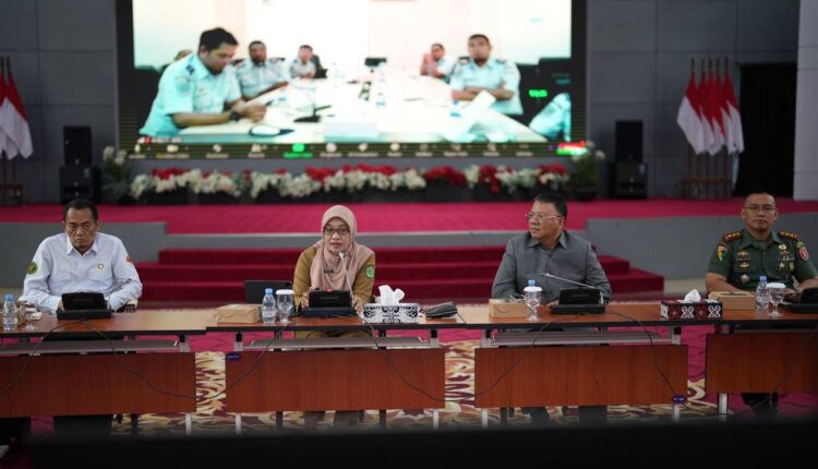 Rapat konsolidasi dipimpin Sekretaris Daerah Provinsi Kaltim Sri Wahyuni didampingi Direktur Ketahanan Pangan OIKN, Setia Lenggono dan Sekretaris Daerah Kota Samarinda Hero Mardanus Satyawan, kepala biro dan OPD terkait dilingkup Pemprov Kaltim dan hadir secara online dari kementerian dan lembaga terkait, di Pendopo Odah Etam Samarinda, Senin 22 Juli 2024.
