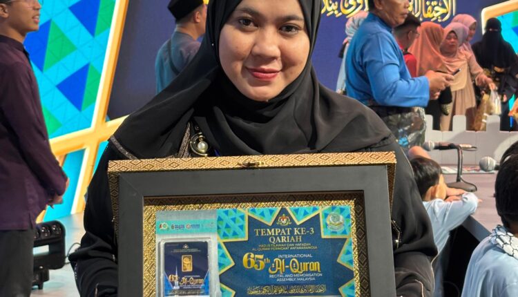 KUALA LUMPUR (Amanah Ummat.Com) Nur Rahmiyatin Adha (Rahmi) Qoriah asal Provinsi Kalimantan Timur berhasil menoreh prestasi menjadi terbaik 3 Tilawah Dewasa Putri di Majelis Tilawah dan Hafazan Al-Qur’an Peringkat Antarbangsa (MTHQA) ke 65 yang digelar di Kuala Lumpur, Malaysia pada 29 Juli hingga 12 Agustus 2025.