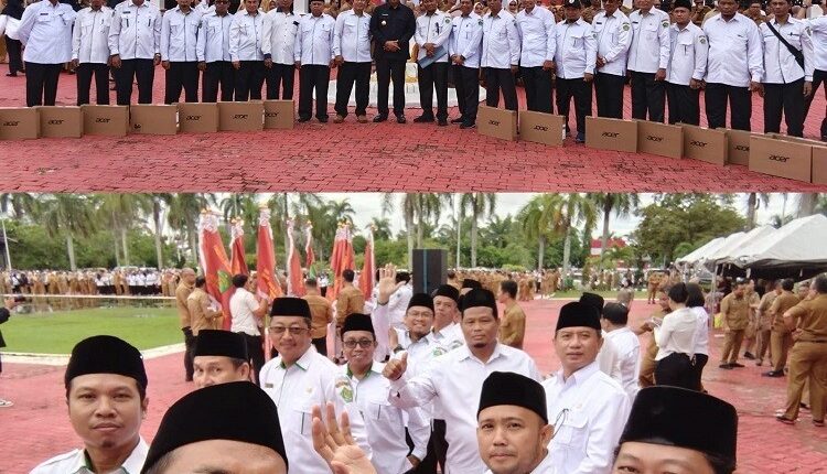 KUTAI KARTANEGARA  Amanah Ummat.Com-Bupati Kutai Kartanegara Edi D Damansyah menyerahkan bantuan laptop kepada 18 Kepala KUA se Kabupaten Kutai Kartanegara, penyerahan dilakukan ketika  apel gabungan ASN dan Non ASN dilingkungan Pemerintah Kabupaten Kutai Kartanegara, belum lama ini  dihalaman Kantor Bupati Kutai Kartanegara.