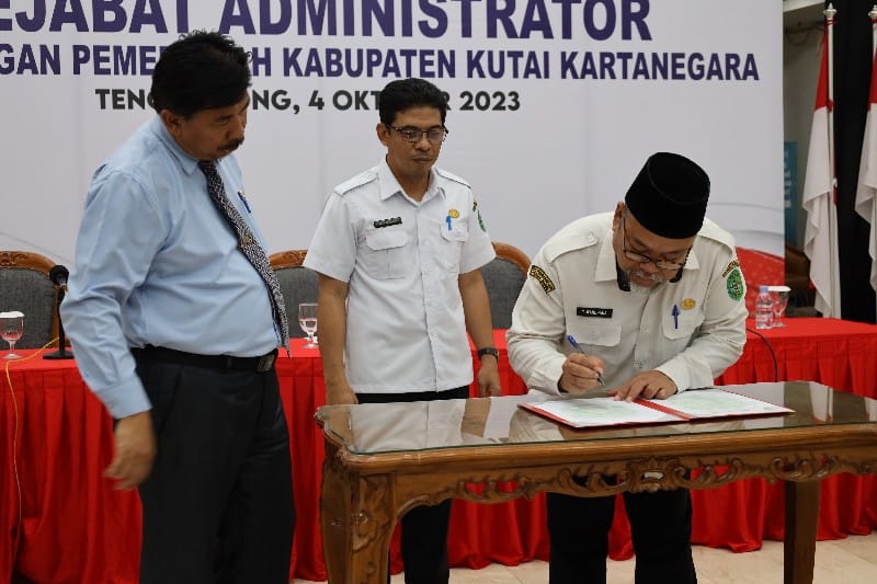 TENGGARONG Amanah Ummat.Com – Sekda Kutai Kartanegara (Kukar) H Sunggono menyaksikan serah terima jabatan pejabat administrator dilingkungan Pemkab Kukar bertempat di Ruang Serbaguna Kantor Bupati Kukar, Rabu (4/10/2023).